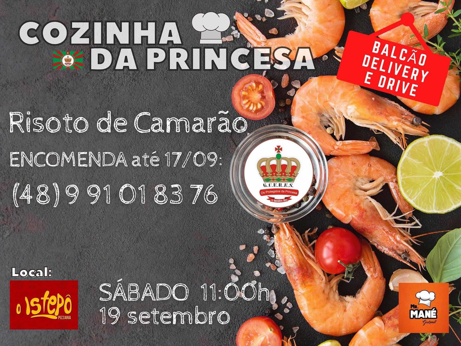 A Escola de Samba Os Protegidos da Princesa faz uma ação bacana no próximo dia 19. É o evento “Cozinha da Princesa” que servirá um risoto de camarão especial aos participantes com retirada no balcão, delivery e drive-in. O preço é R$ 25. A verba será destinada à manutenção de custos da escola. Mais informações na arte.
